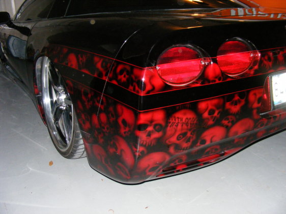 Shaved Door Handles, Gas Filler & Emblems, Custom Paint by South Coast Customs (Black with Deep Red Skull Graphics)