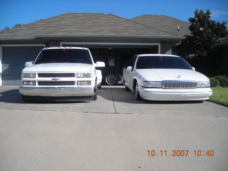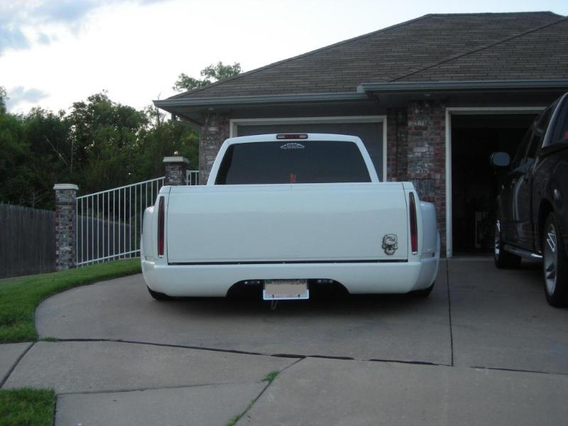 Billet grille,smooth chrome bumper,clear corner lights, and headlights, and park lights, rollpan, shaved tailgate handle, and shaved taillights w/ Cadillac taillights instead