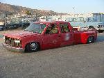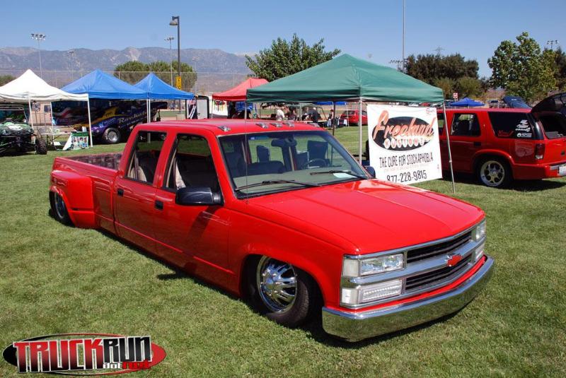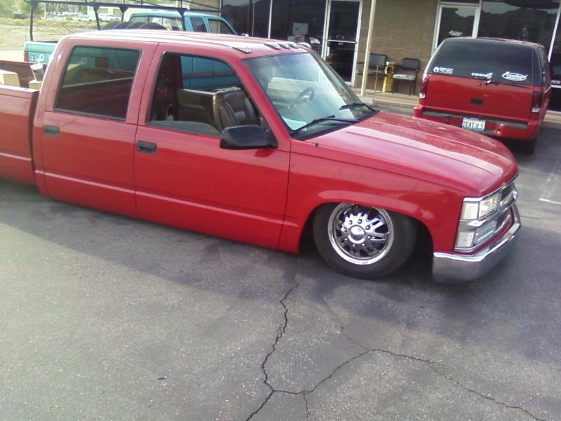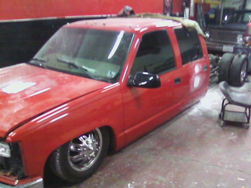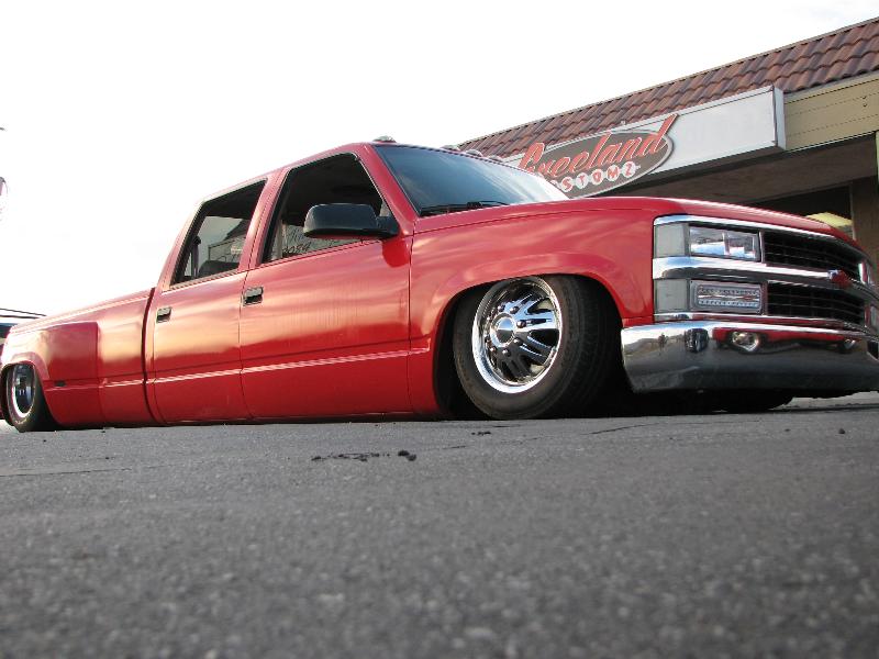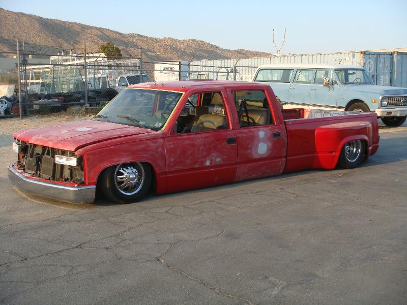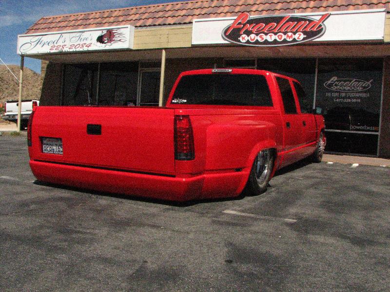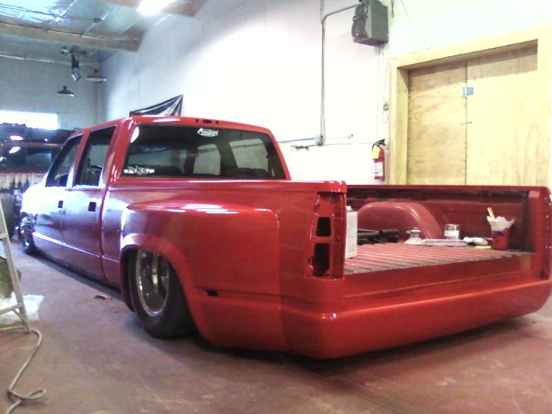 red, custom bolt on lights, plate in gate, roll pan, repainted, Body dropped to the rockers.