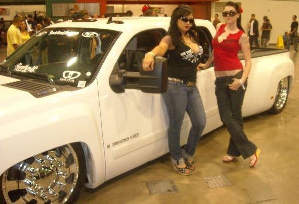 McGaughys 2” 3/4 ton drop spindles, rear Auto Core kustoms fourlink kit, Slam specialties 8” air bags on rear 4
