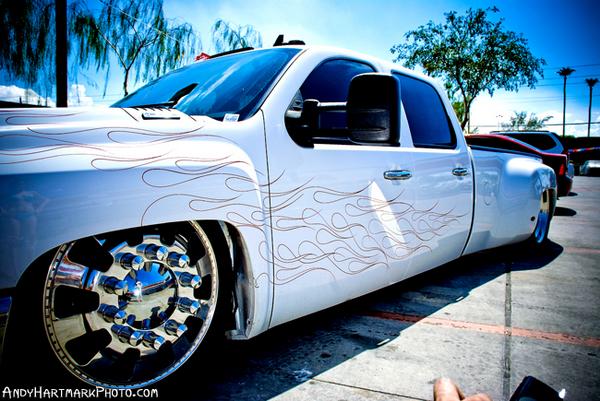 Full color graphics wrap by smartwrap.com.Custom rollpan from Grant Kustoms by Auto Core Kustoms along with custom rockers. Trex mesh grills,chrome escalade door handles