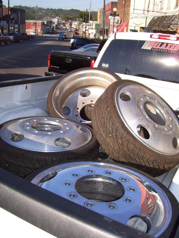 (6) 24.5" International semi wheels cut to 24". 255/30/24 Kumho tires. Talk to Trevor @ Tennessee Wheel and Tire for all your Semi Wheel Needs.