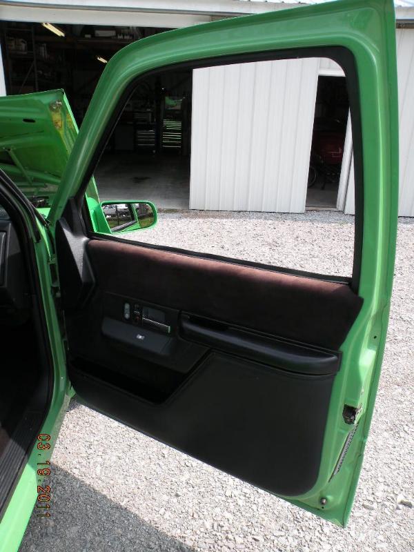 Thanks to Big Body Custom Interiors for the work on the Seats and Doors. Call Big Body @ 615-593-5074./ All the interior is blacked out with suede head liner and painted plastic. / Billet Specialties steering wheel.