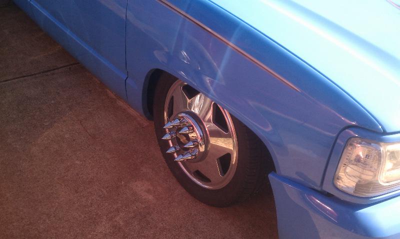 Porches river blue with airbrushed graphics by ///SHROOMS custom air. Shaved everything, sliding rag top, Caddy clip, sheet metal bed