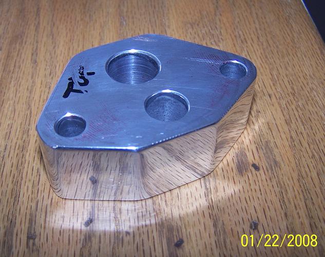 Aluminum EGR spacer that I machined for a customer to clear tall valve covers for his BB 454.