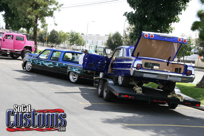 Ghetto Bob from Homeless Entertainment in Las Vegas designed and built a center console subwoofer enclosure with Rockford Fosgate 10-inch subs powered by a mono amplifier. The midrange and higher audio output comes from four 5-¾ component speakers powered by a 4-channel amplifier. All of this audio equipment could not supply music without the Pioneer DEH-780 head unit. The starting and running power comes from two Optima batteries.
