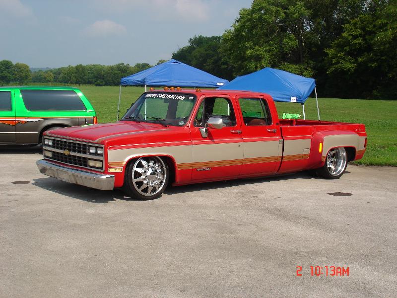 3" stockfloor bodydrop, slams re7's in front re8's in rear, airlift digital controller, nitro shocks, parallel 4-link, 1/2 inch valves, 4 viair 380c's,