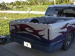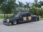 shaved like it's owner!...paint compliments of Fireball Graphics...12 layers of graphics, complete color change, graphics run through all 16 jambs and between the bed and cab, bed is completely covered in a diamond plate graphic with a kickass graphic on the hood...trenz billet grill, billet bow tie (well duh)