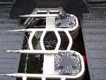 350 vortech, urethaned black, pulleys and brackets are black. flex-a-lite dual electric fans. custom stainless dual intake and intake housing. Hand fabbed engine covers shorty ceramic coated headers. Eng also lowered 2", hand fabed fuel cell rhino lined with stock fuel pump under bed, battery and charcoal box relocated under bed. Painted control arms, spindles ect. pewter
