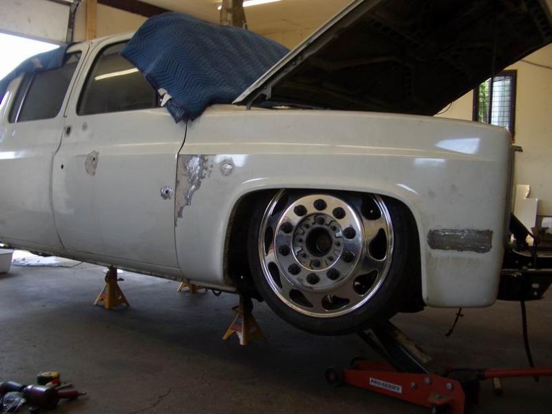Bagged with 3/8" fill and 1/4" dump valves, 1/2" line, Re 72 Slam Specialties front bags, 1R9 rolling lobe rear bags, Avs switch box, parallel 4-linked, frame boxed in form front to back, tubular mounts for bags and goose neck, All suspension pieces painted or chromed etc.... All work done by Crazy Talk Customs check them out at www.crazytalkcustoms.com for more build up pictures.
