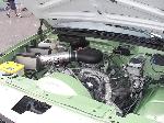 bored small block, performer intake, mild cam, edelbrock headers, throttle body spacer, accel distributor, wires and plugs, aem intake, billet pulleys, chrome powermasters 140 amp alternator huge york comp, polished a/c lines, optima battery,lots of chrome TH350 trans with b&m internals, TCI 2800rpm stall and tci shifter. 100 shot NOS setup with dual purge kit