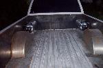 shaved, primer, escalade clip, HIDs, billet grille (2) 12" LED tail lights, putco duramax ion chrome cab lights, 2 design flame tint, tubbed and halfway sheetmetaaled bed