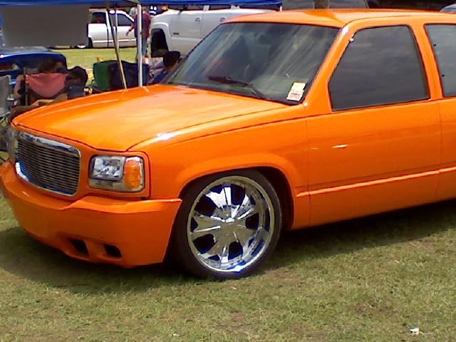 Escalade front clip, deville tail lights shaved mirrors, door handles,3rd brake light,smooth roll pan, and angled tag in tailgate.