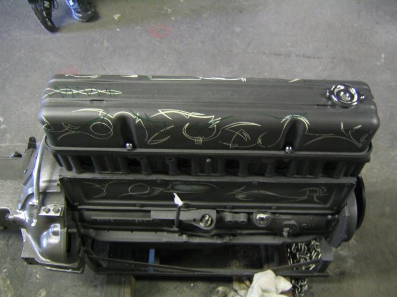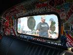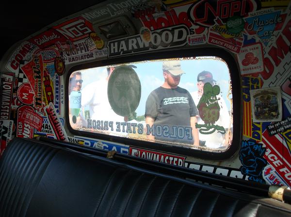pinstriped dash, stickers all over the back wall, tuck and roll seat