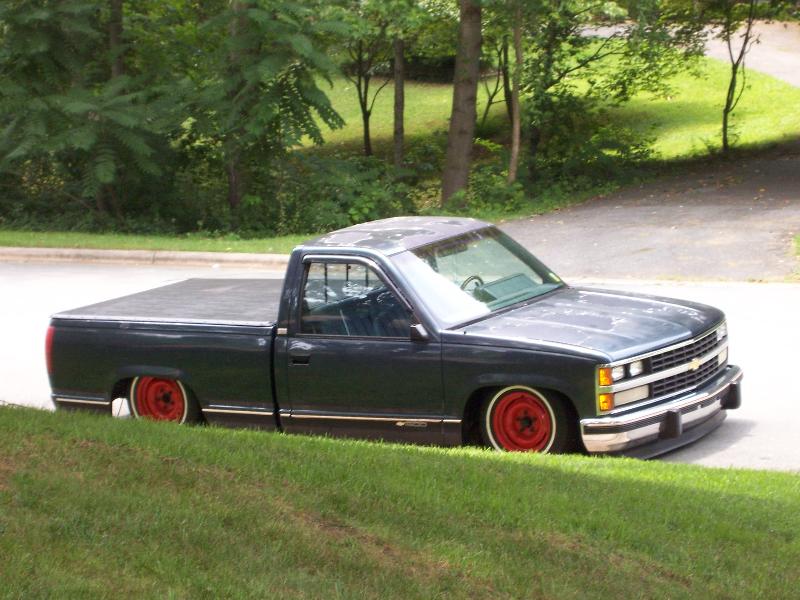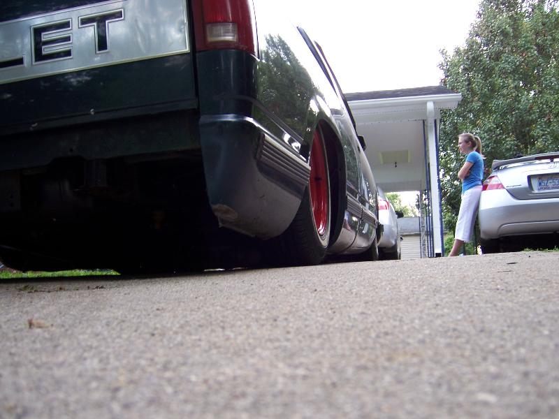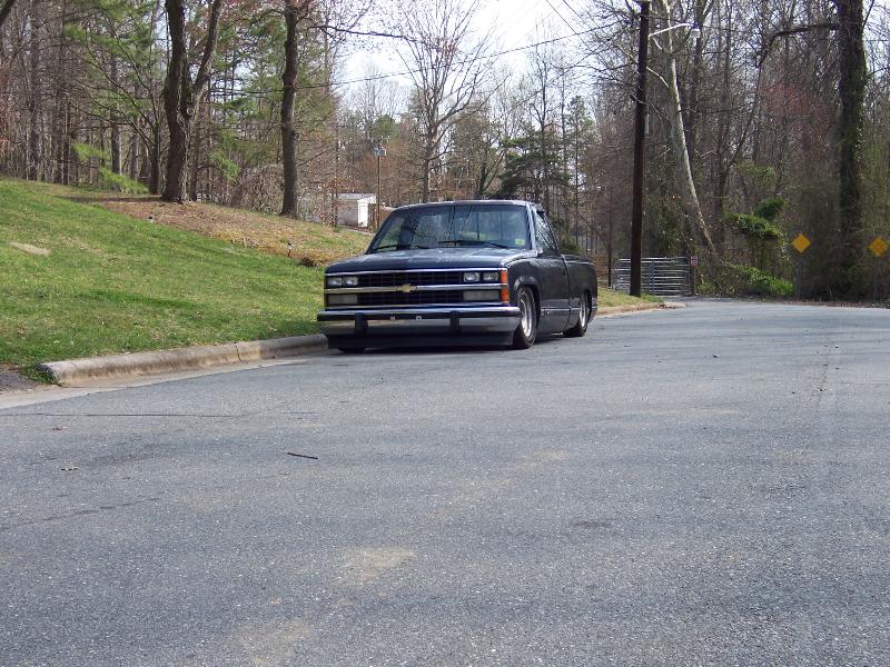 belltech spindle, super pivot 4 link (thorebeck), 9 gallon air tank, triangle notch, 2 slam specialties bags up front, 2 2500 airlift bags out back (will change soon), front cups, and a chrome eai 5 switch box, 1/2 air line, 1/2" asco valves, viair 480c compressor, ranger shocks on front