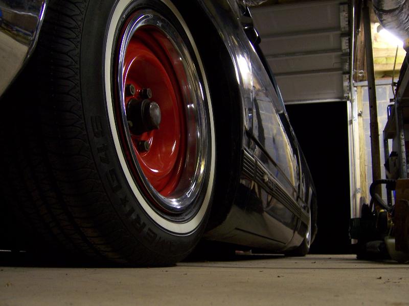 stock steels painted red with 3/4" white wall and beauty rings