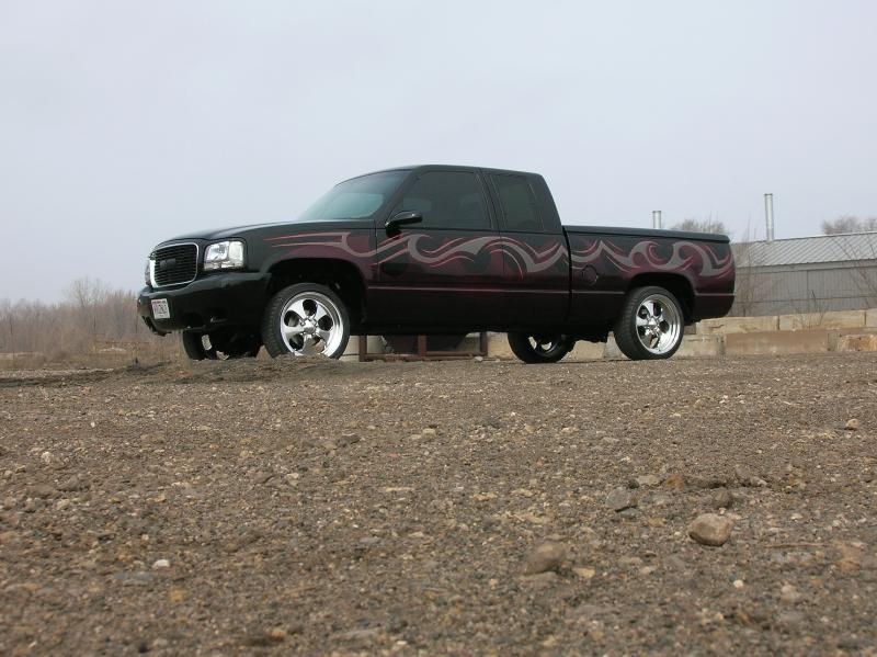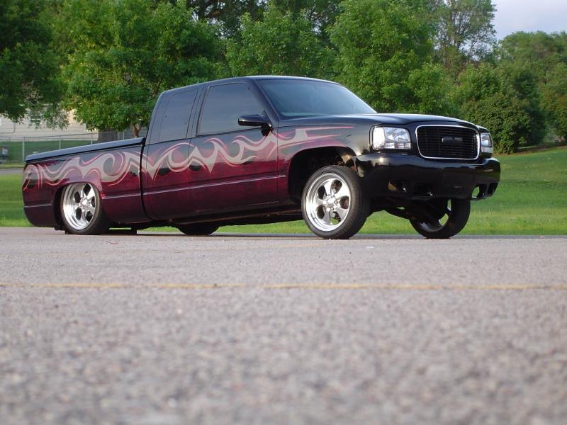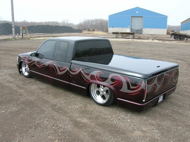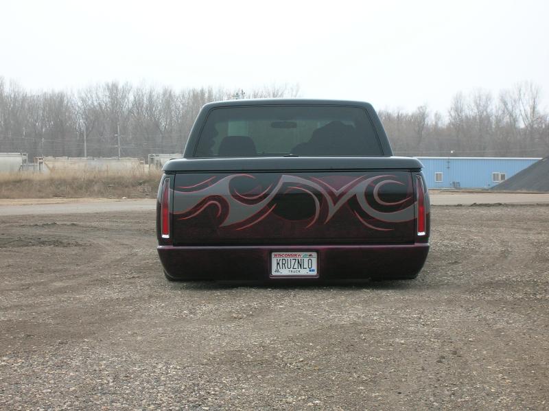 Denali oem clip, Shaved taillghts, frenched 96 deville tails, (grant customs fillers and buckets), Molded "Custom Classic" roll pan, Raider Lorider tonneau cover, Shaved gate handle, Shaved door handles, Shaved Cab Seams, Shaved 3rd Brake Light, All New PPG Glass! Tint, Street scene LED signal mirrors, Smoothed factory wiper cowl, paint carried into jams.. etc etc