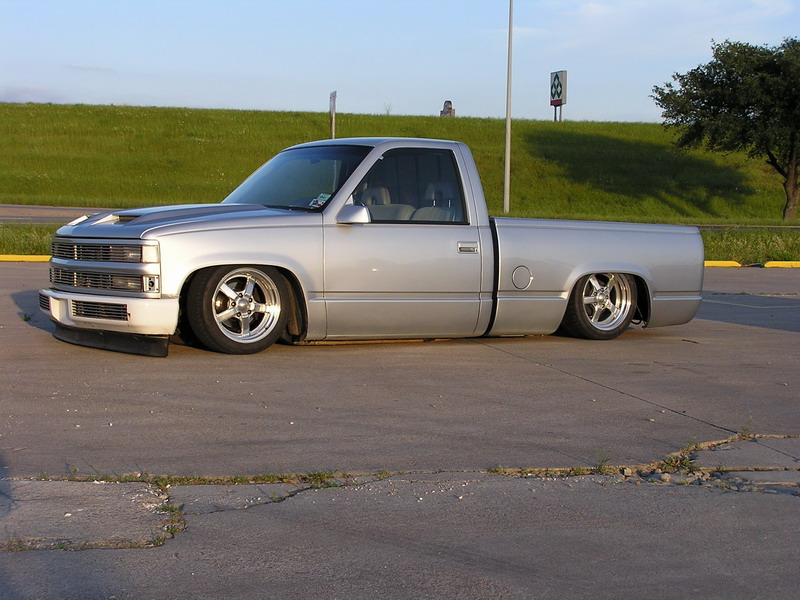 Shave Antennae, Stake holes, roll pan, tailgate handle, taillights, 3rd brake light, billet LP frame(thx Sinner)