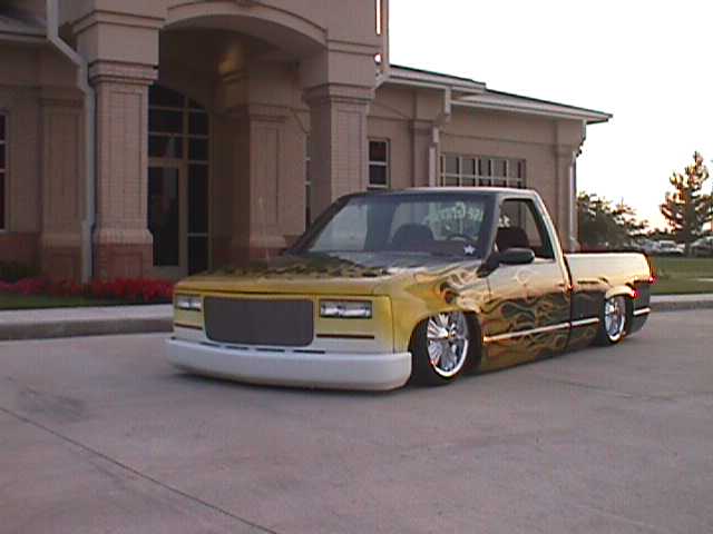 shaved upper body line taillight and gate handles and a 3 1/2" bodydrop gmc grille with lower turn sig shaved and 30 bar insert. led taillight and turn sig. SOLD
