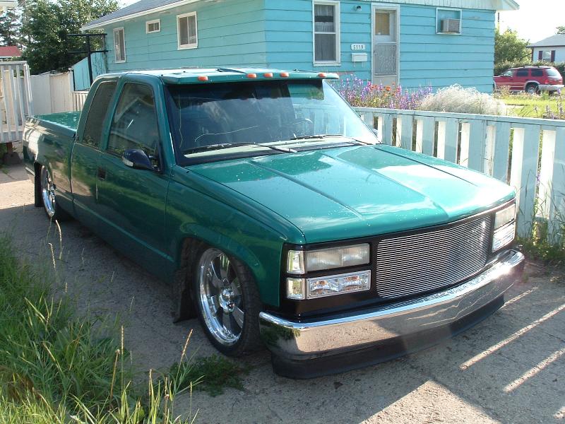 98 GMC front clip w/Trenz billet grill,clear corners and markers,Shaved: door handles, mirrors, tail lights, tail gate handle,frenched license plate, molded in steel roll pan, lame visor