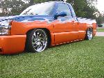 shaved emblems,shaved tailgate with license plate box in it,shaved fuel door,SS bumper cover,fiberglass bed cover,billet intenna,shaved roll pan,graphics HOK sunset pearl,orion silver,and arrival blue