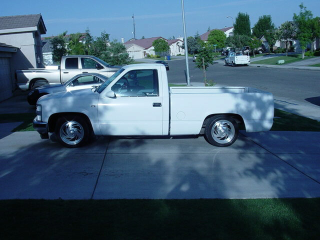 Buckets From 97 Pontiac Sunfire. Custom Paint, and Console.Chevy Floor Mats, White Gauges Face, Stereo, and A/C. trenz mirror and flamed milled door sills, ryna billet pedals. 3 3/4 tach built into dash, not on top of my dash, this truck dont run off soy sauce.