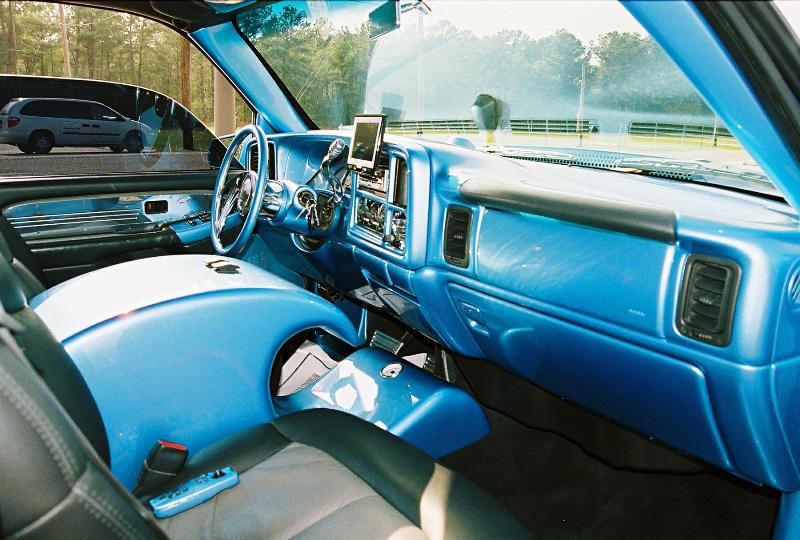 2-tone custom leather, fully painted dash and trim pieces: visors, coat hooks seat trim ovehead console, and everything else except the door panels until i get em gel coated leather headliner billet specialties revolver wheel, billet dash, door trim, step trim,pedals, gear shift