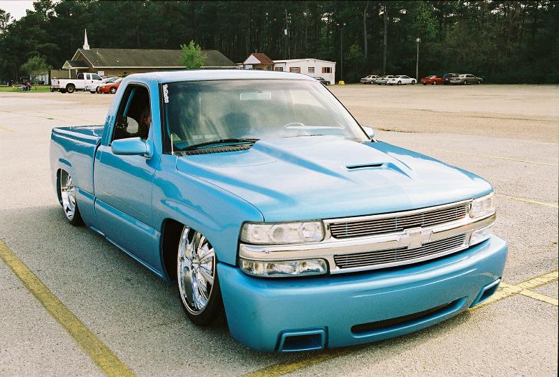 Shaved doors, tailgate,gas door 96 Caddy deville taillights frenched 1.5 inches, Tahoe grill and bumper cap, gaylords X2000 lid, SS sport mirrors ss bumper, hid projector lights , one off hpnotiq ice blue mixed myself