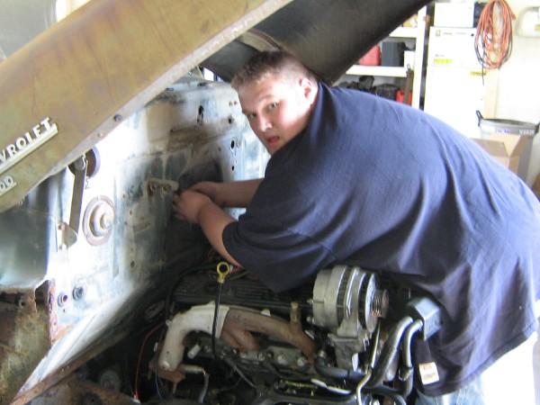 1996 Z28 Camaro LT1 4l60e trans, 64 impala rear end, b and m shifter used radiator and power steering pump out of the camaro too...