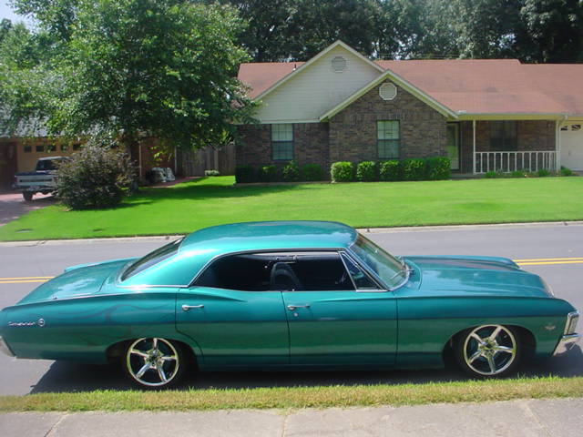 PPG Blue-green Teal Poly prizmatique and ghost flames on rear. Much thanks to Mr. Gale White of Fusion of Tricks Custom Body and Paint. Custom window tint by Mr. Billy Pierce of Russvegas.