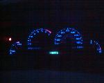 stock grey leather. replaced all interior bulbs with LED bulbs guages in blue and the rest are white.