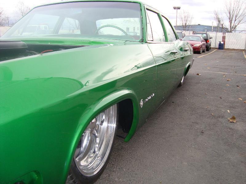 bodydropped 4" shaved drip rails, welded lower fender extensions, shaved trunk emblem and key hole, shaved rear body molding.