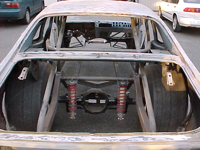 2x3 frame mossison struts in the front ladderbars in the back 8.5 10 bolt 35spline axles and a spool wilwood brakes