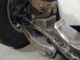 1/2 ton lower c-arms with '88 3/4 ton ends welded on. Sectioned front cross member 3 inches, lowered center of front cross member 2 inches, Chassy tech 2 inch 3/4 ton drop spindles. Disk brakes in front. All powder coated Silver.