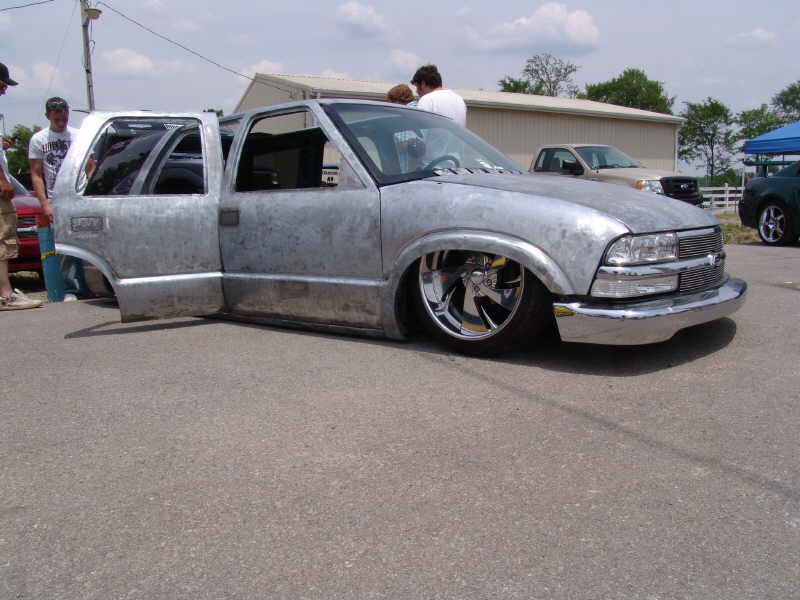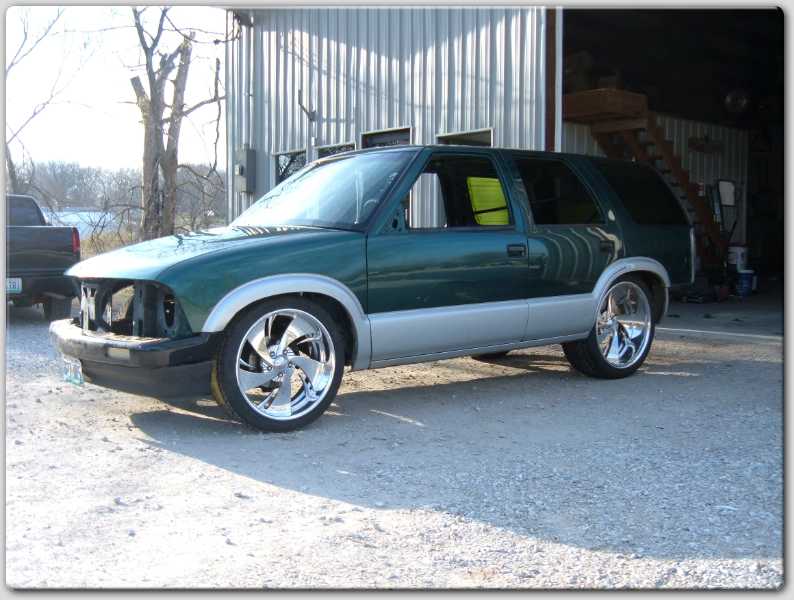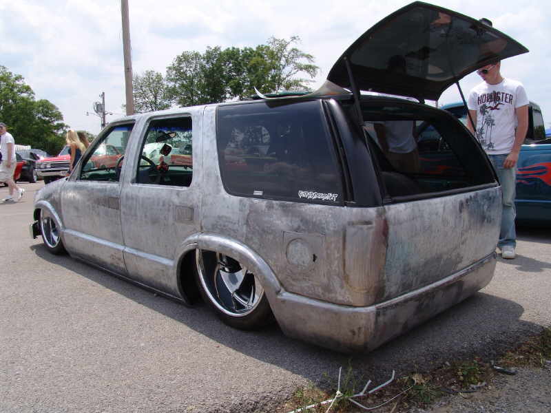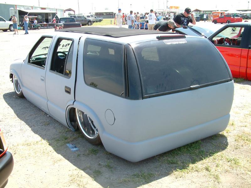 Bare sheetmetal :) 98+ S10 Conversion in Chrome w/ flush billet installed, diamond clear headlights and turn signals, shaved handles all around, shaved gas door, shaved antenna, full rear shaver kit from Grant Kustoms, shaved tails, rear gate welded shut, shaved rear wiper & gate button, shaved stock mirrors, Fireman's Cross Harley mirrors, 38x70 StreetBeat Sliding Rag, shaved 3rd brake light, possibly a Toyota bumper up front from Grant