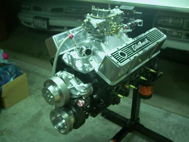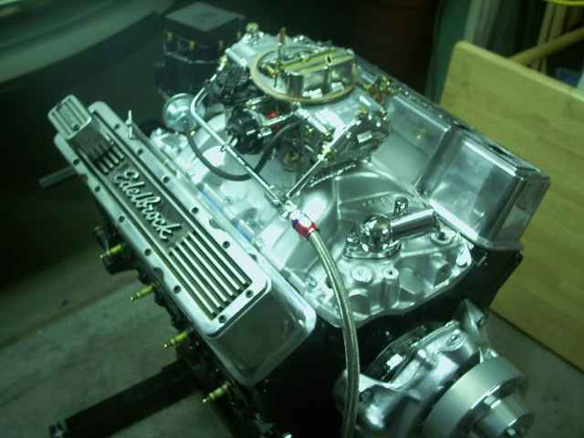355 Small Block Chevy, nasty Comp Cam, Holley Street Avenger 770 Carb, Edelbrock Performer RPM Intake, Pertronix Ignition, Hedman Shorty Headers, 700R4 tranny mated to a massively narrowed Ford 9"--engine work performed by Hector Gonzalez of BlazinLow.com