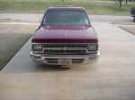 maroon with black. Toyota front end. Caddy lights and of course a roll pan