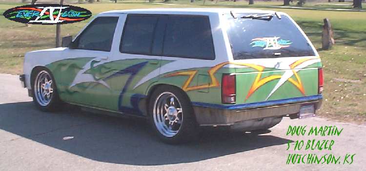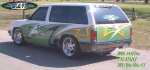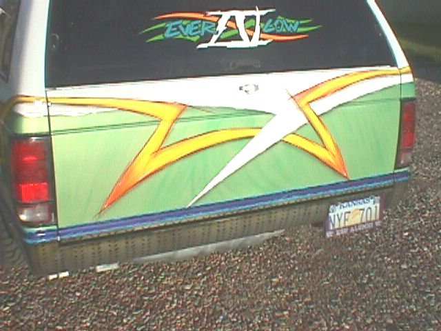 Graphics, shaved antenna, third brake light, roof rack, spare tire carrier, molded roll pan