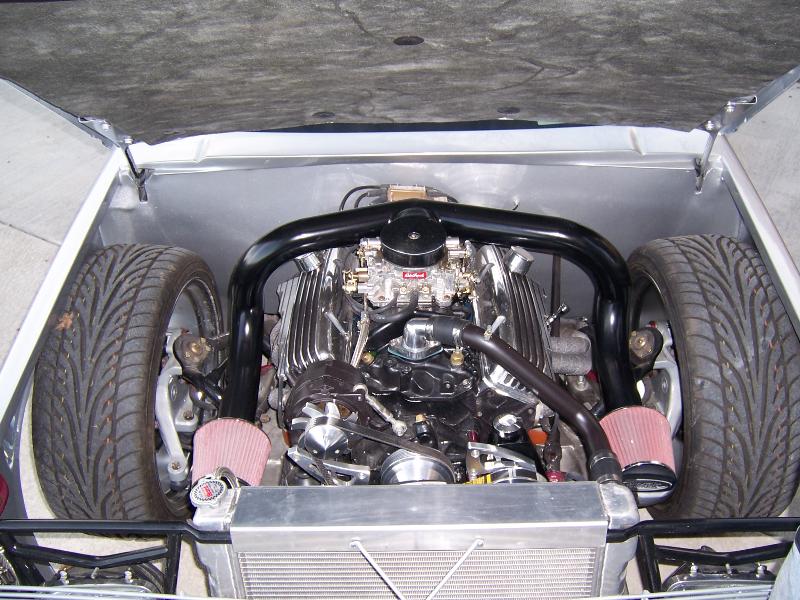 SBC 355, mild cam, hedman headers, Edelbrock 650 carb, custom air intake all under stock hood with 5" body drop!!!!!!!