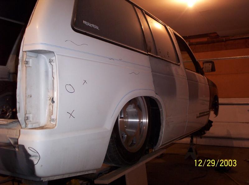shaved everything, all 4 door handles, rear bump er, tail lights, gas door,body seams,fi re wall, recessed fire wall for wheels.