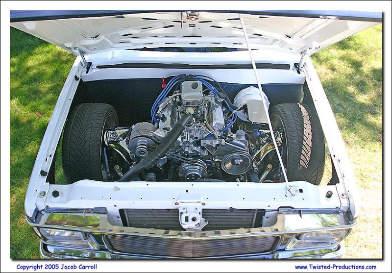 406 sml block ,vortec heads, full roller motor ,billet mounts,dual 300 amp alt, dual pipes with flowmasters,400+hp,700r4 with stall,painted body