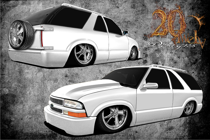 shaved the normal goodys with caddy tails billet spare tire mount and roof rack.