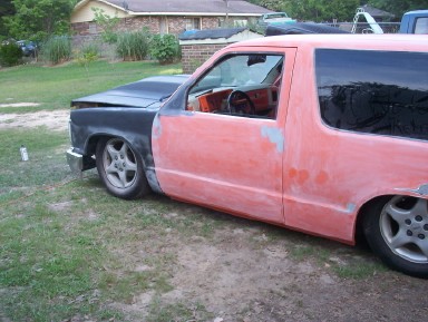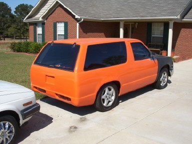 shaved doors roll pan phantom grille!!! supra taillights, shaved body line,roof rack, welded tailgate shut, blah blah blah!! wuz in a wreck dont have the pics from when it wuz orange just the in between and rimer pics lost the before!!!