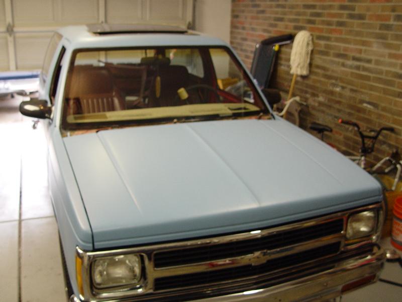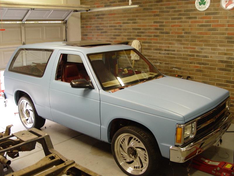 PPG blue primer, 91 front clip, smooth front bumper, shaved doors & tailgate, Street Scene mirrors, spoiler sunroof.