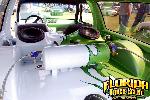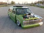 frenched in tag, intennas, civic door handels, dodge rampage tail lights, new school fender flares, suicide doors and hood, rag top, 73 fulsize bumper shorten and molded,etc.