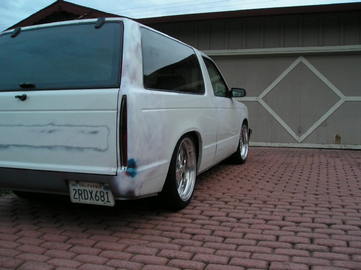 flat black, 90 caddys, shaved roof rack, emblems, ant, doors, upper bodyline, side trim, roll pan