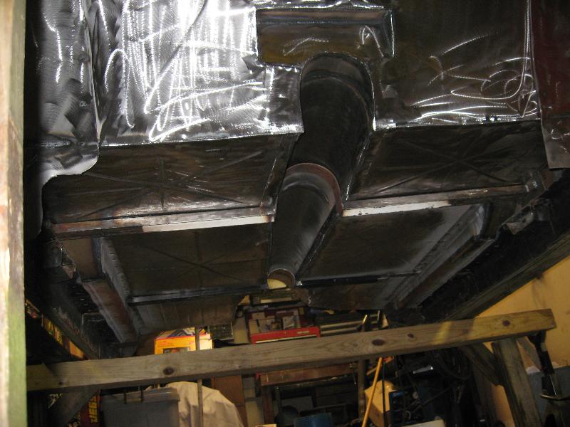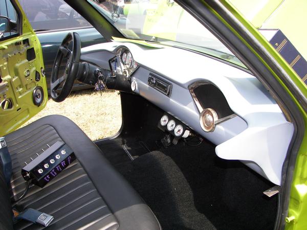 55 chevy dash, bench seat with tuck and roll, chrome steering wheel, autometer artic white guages, complete from front to back bead rolled floor hand built, for a traditional body drop, with only losing 3 inches of head room