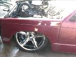 custom built frame made with 2x3 tubing , stock floor and standard body drop 6-3/4", 2600 4ply conitechs all around , 8 gallon air tank, 2 viair 380 compressors all 1/2 " air lines
