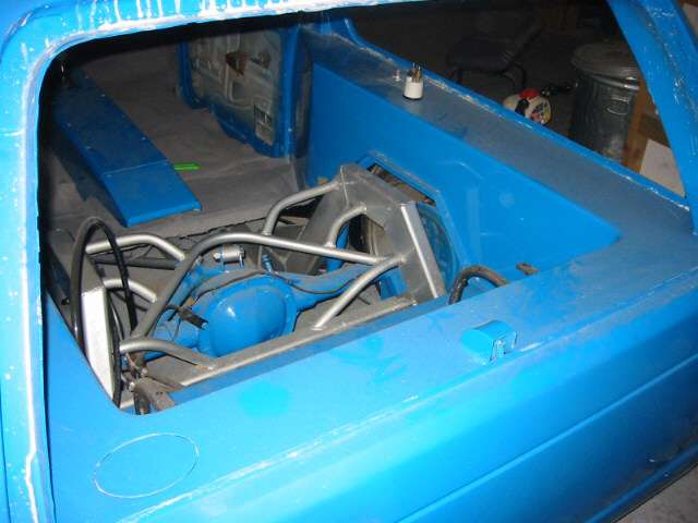 some tweed, painted dash and center console, sheet metal in back with Lexan window for viewing the notch work