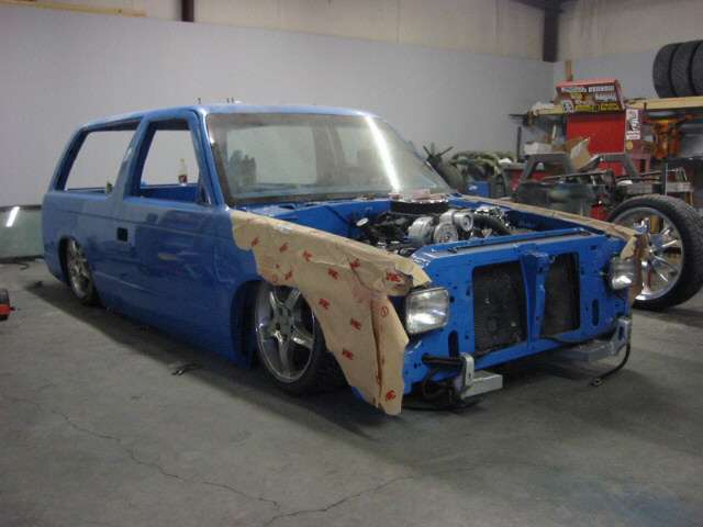 Geo Tracker Competition Blue, 95 Blazer door handles, shaved wipers, antenna, back hatch, roof rack, top body lines, tailgate welded shut, gas door shaved and Hagan gas door relocated to just inside the hatch, 3.5 inch body drop, Caddy tails